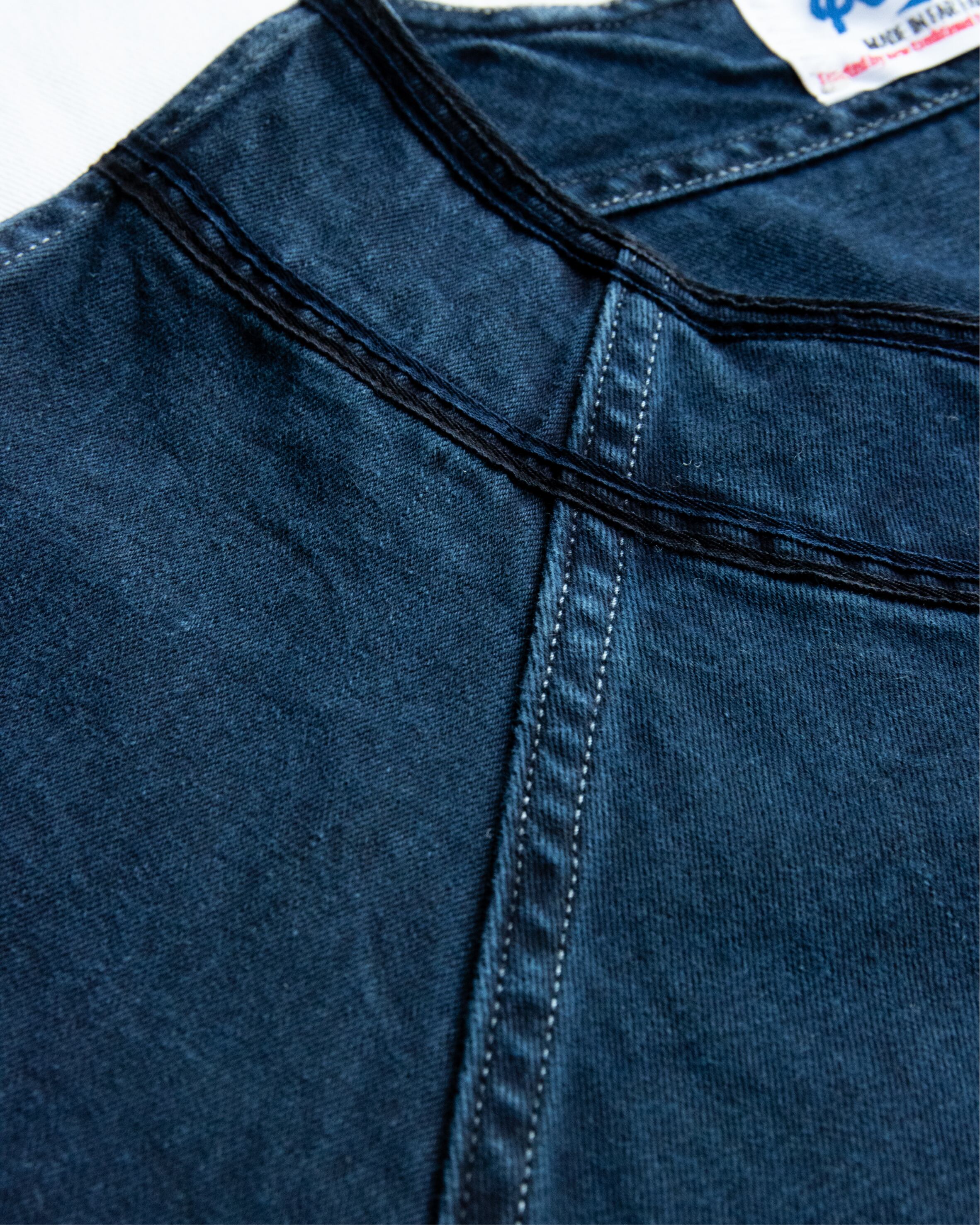 さらに、通常とは異なる縫製プロセスと製品染を行うことで、