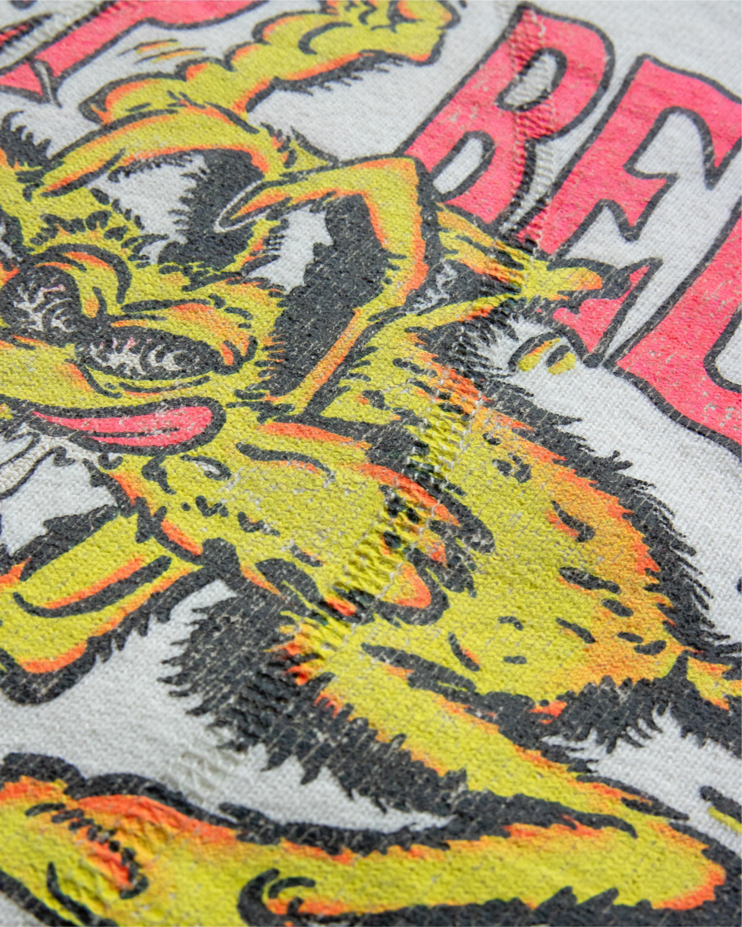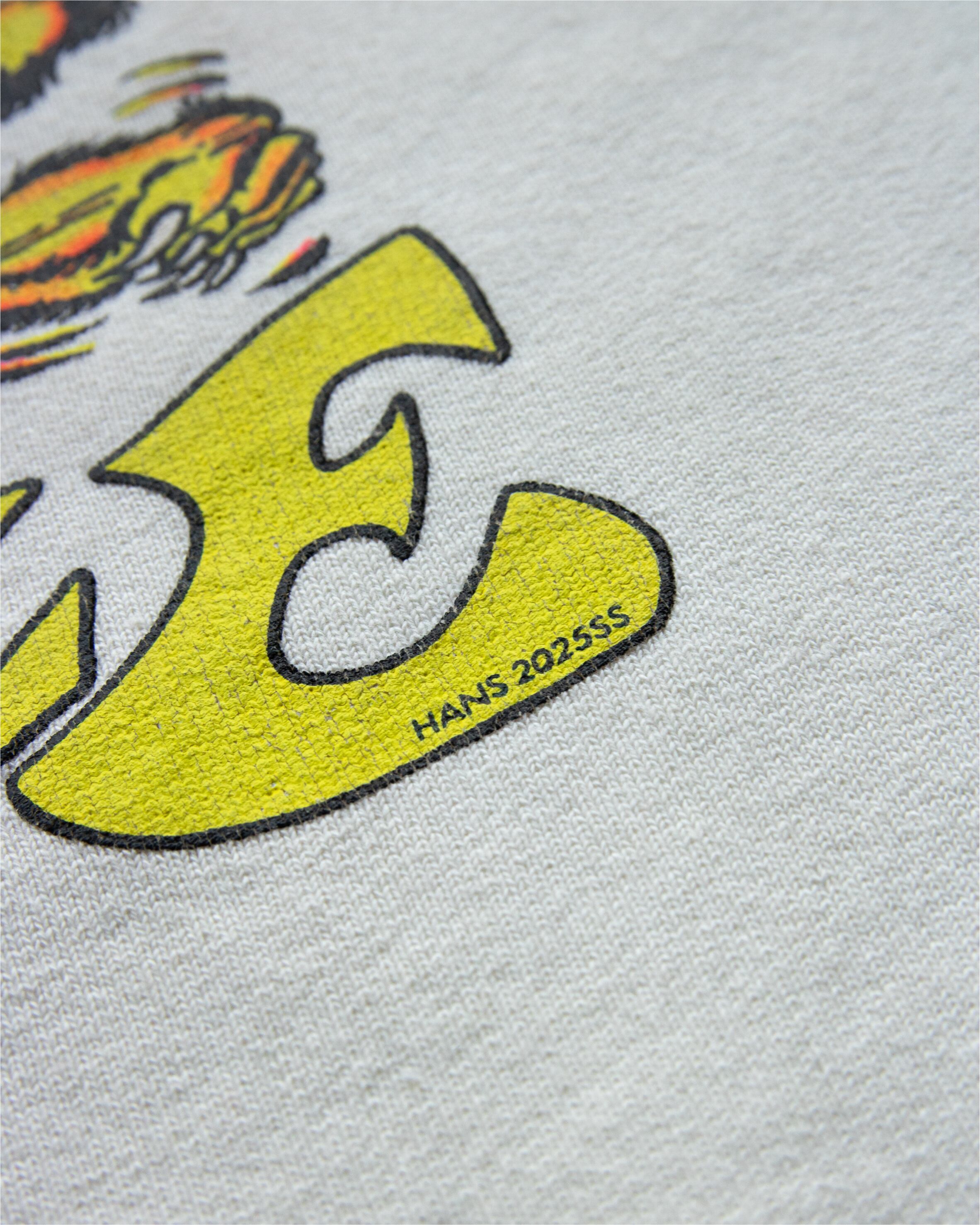 前見頃と後見頃に同様のプリントを施し、あえて異なる加工で仕上げた。