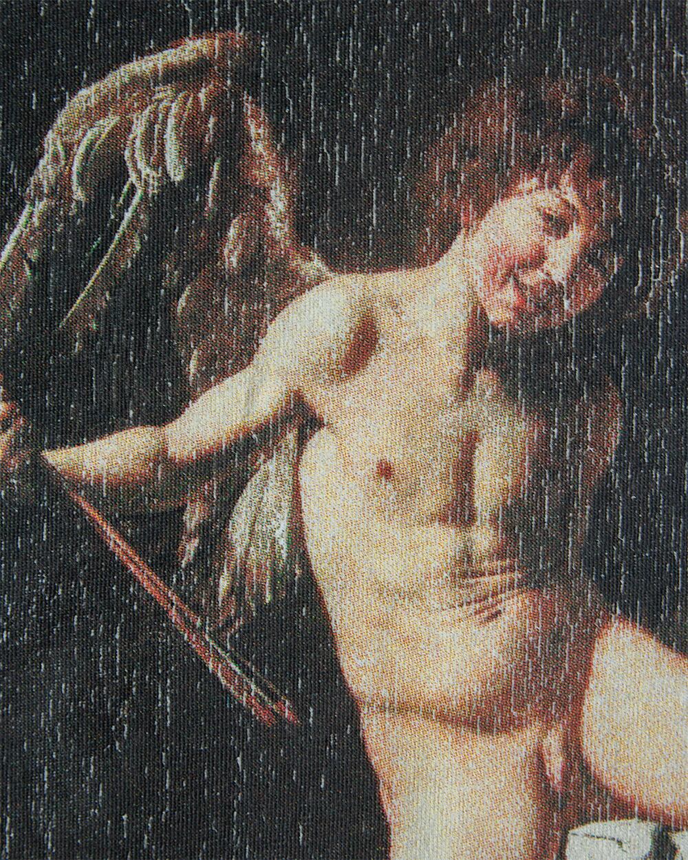 Caravaggio作「Amor Vincit Omnia=愛は全てを征服する」を前後に4色分解のシルクスクリーンプリントを施しました。