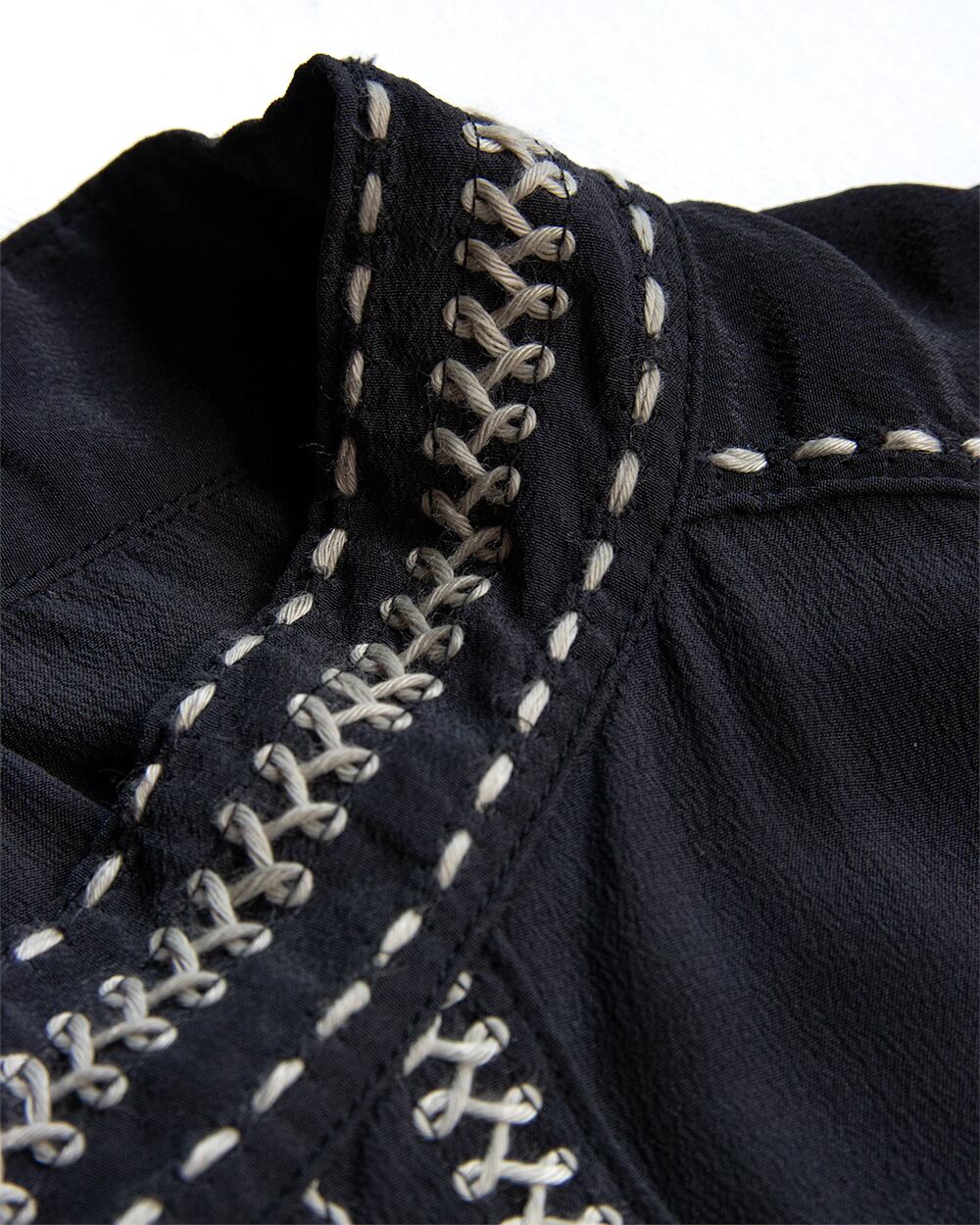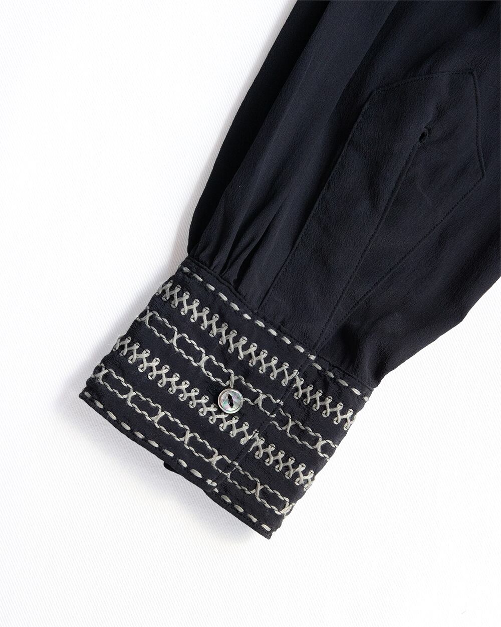 贅沢にあしらった刺繍は機械と手刺繍を組み合わせており、温かみのある仕上がりになっています。