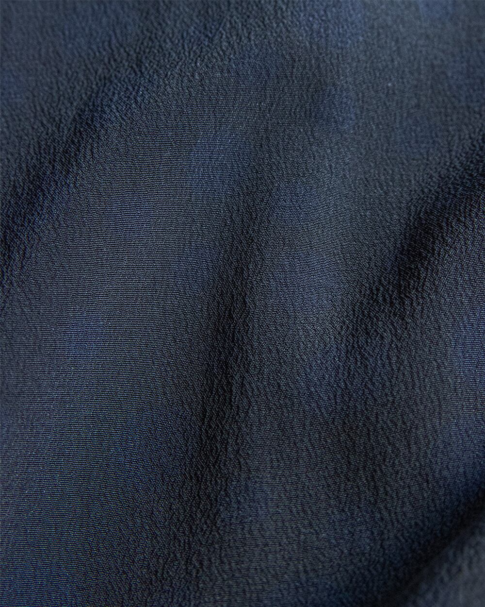 素材を薄いシルクジョーゼットに置き換える事で過度な光沢と肌とのべたつきを抑えメンズライクな印象でありつつ涼しげな印象にまとめています。
